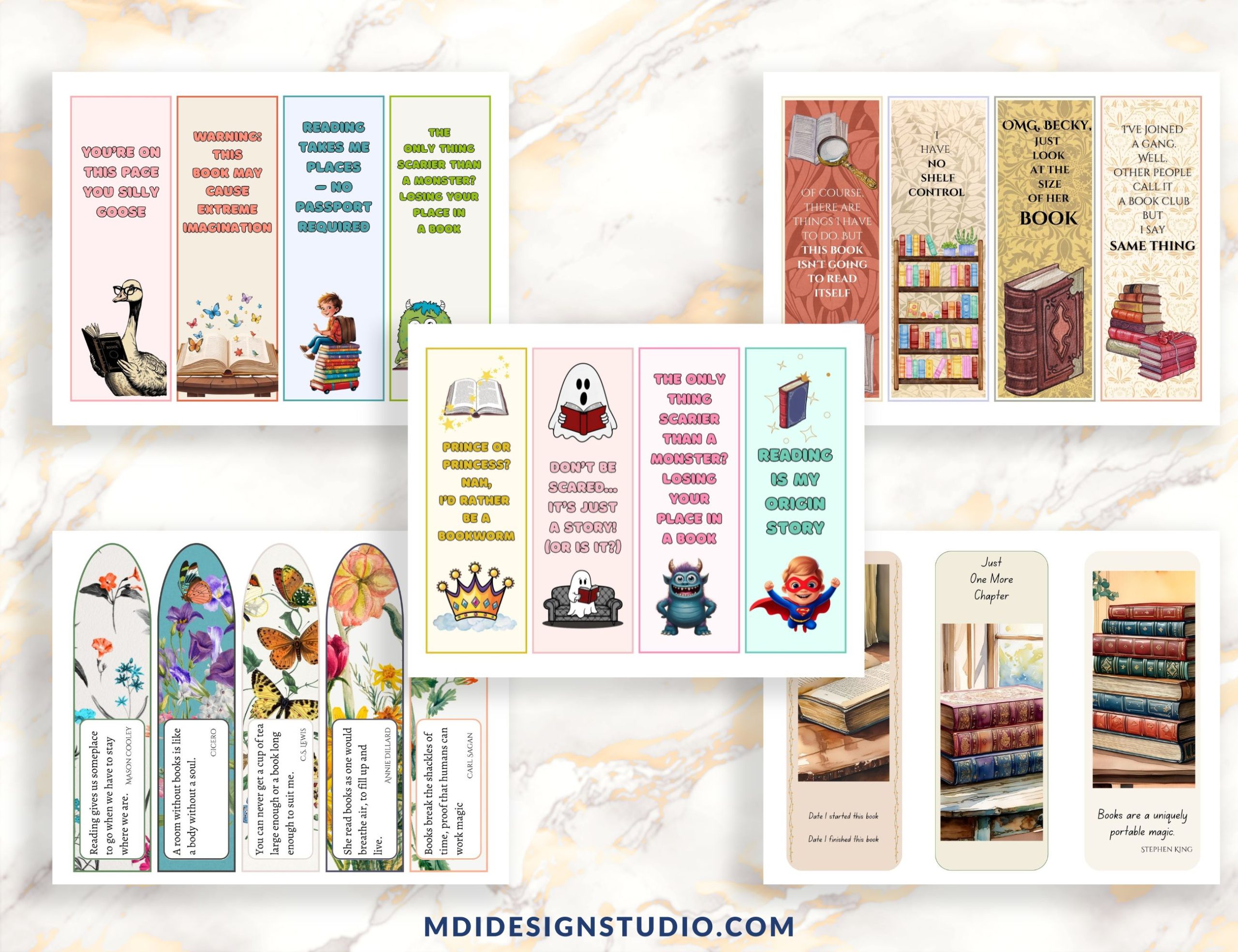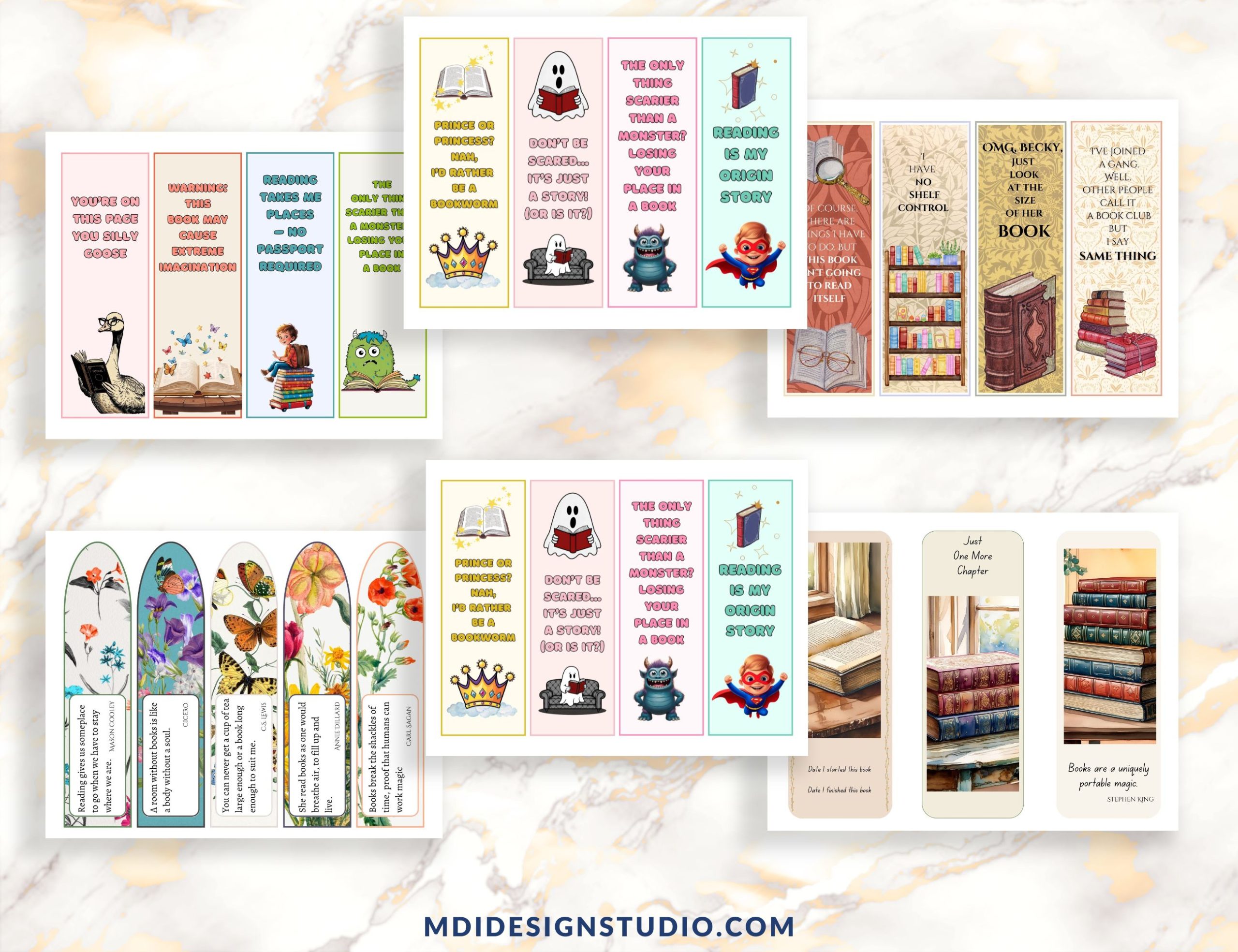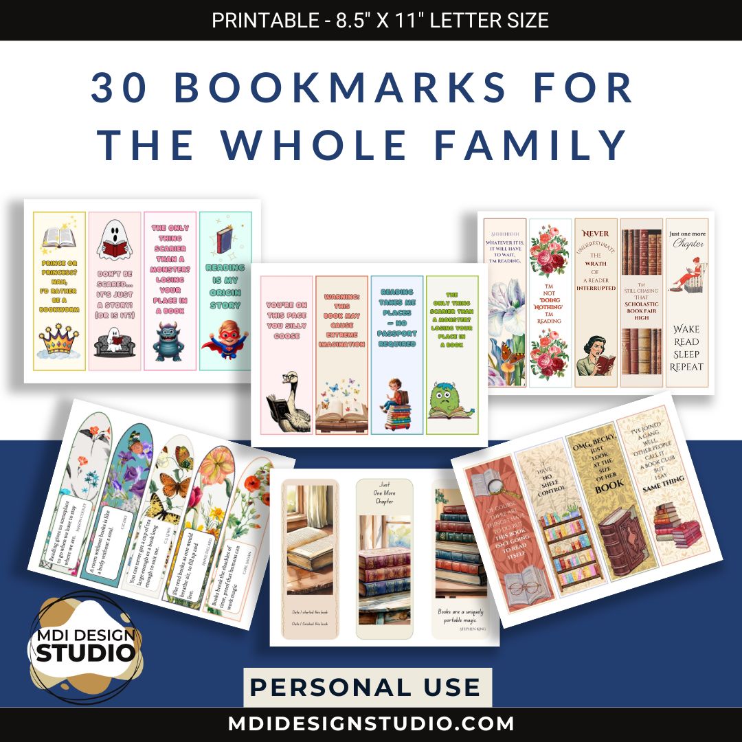 This set of 30 printable bookmarks includes a delightful mix of designs for both kids and adults. Whether you’re gifting them, using them in the classroom, adding them to book club packages, or simply keeping your place in a favorite read—there’s something here for everyone. From cute and colorful bookmarks for children to elegant, inspirational designs for grown-up readers, these are perfect for readers of all ages.