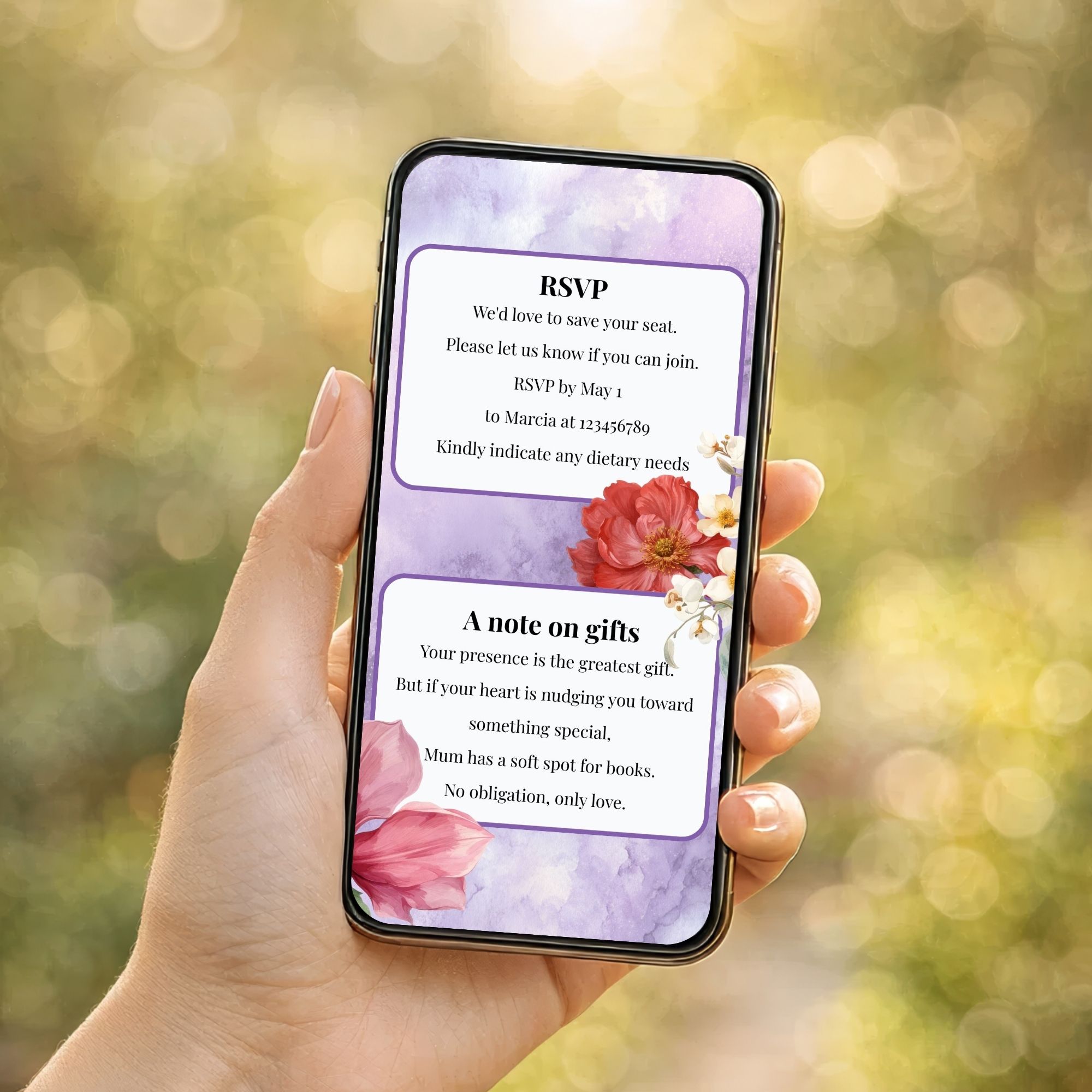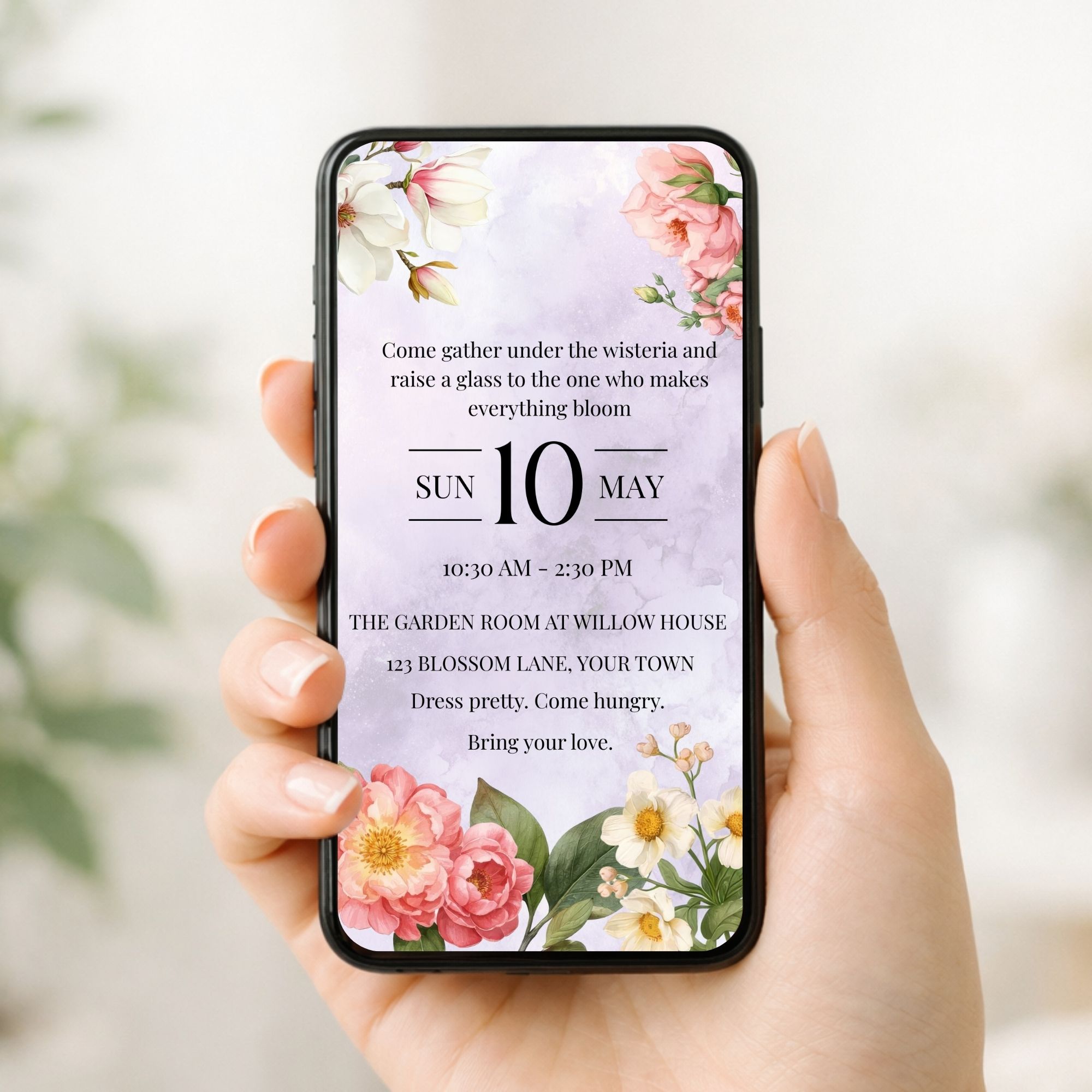 Whether you are hosting an intimate garden brunch, a family lunch, or a special afternoon tea, this invitation sets the tone perfectly — warm, elegant, and utterly unforgettable.