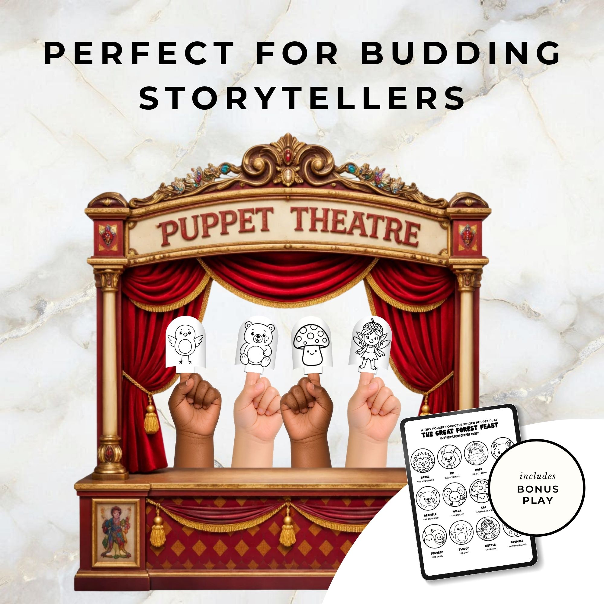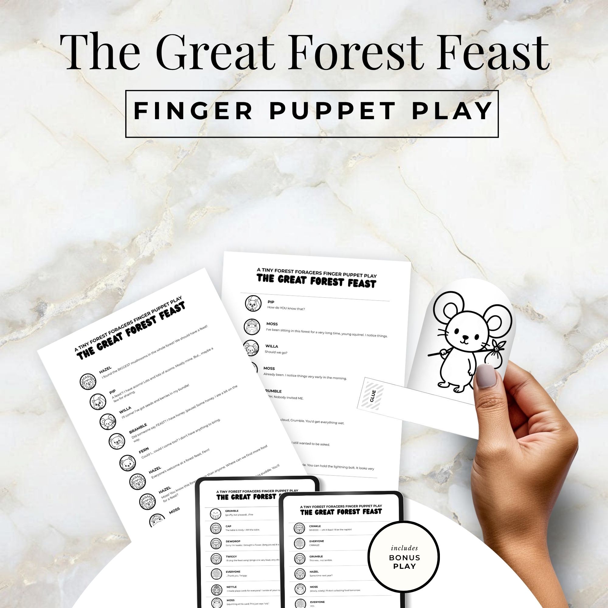 Bring the forest to life with these 12 adorable woodland finger puppets! Perfect for little hands aged 3–8, this printable set includes a ready-to-perform play script for hours of imaginative storytelling.