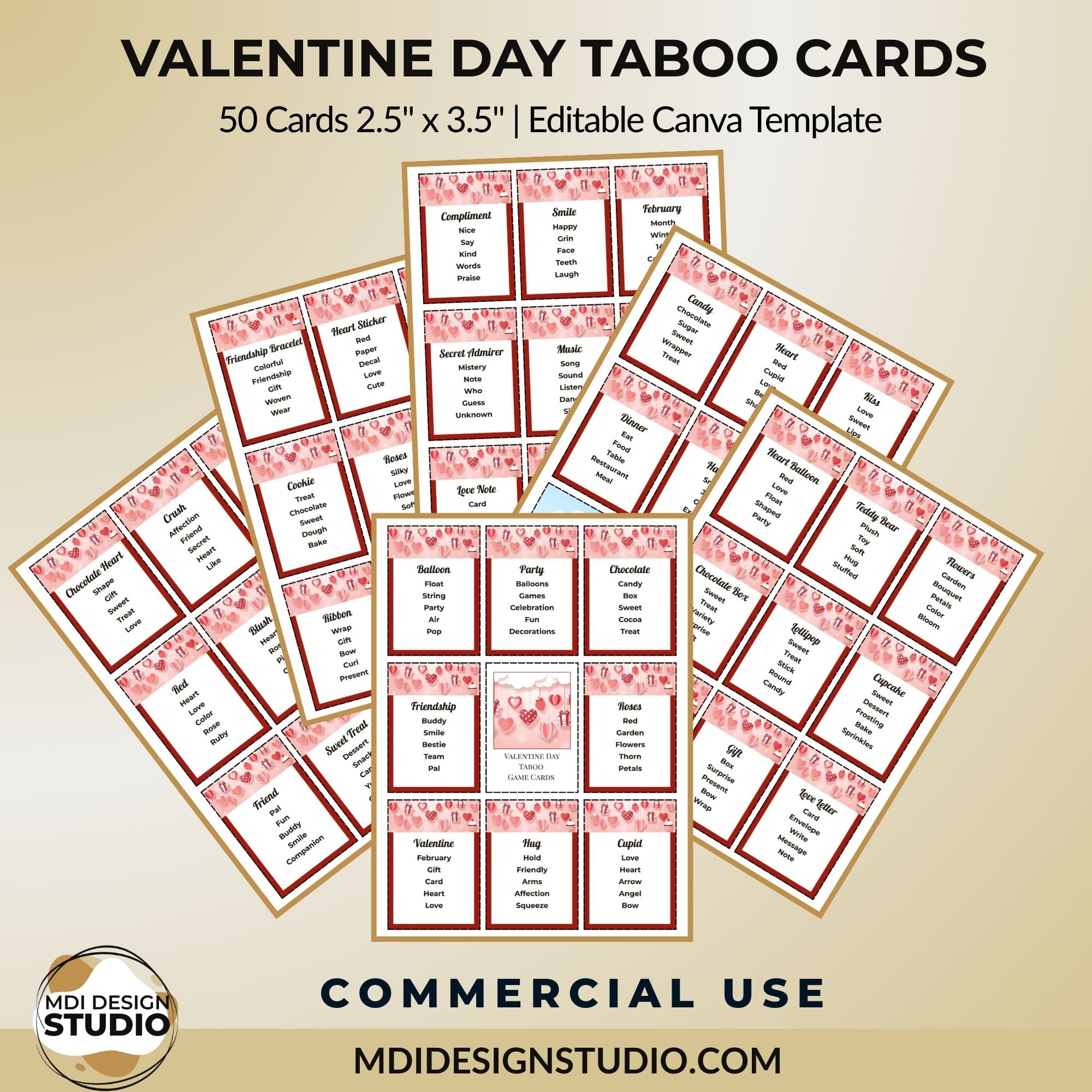 • 50 carefully crafted game cards with age-appropriate Valentine’s themes